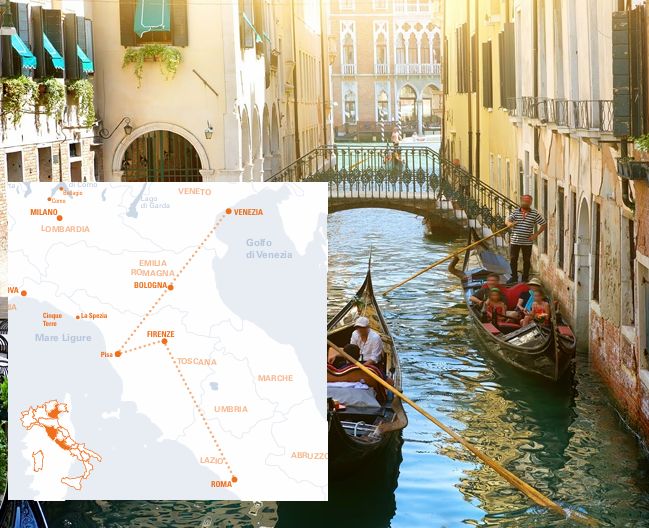 Café da manhã no hotel e descubra Veneza de gôndola. Dirija-se por conta própria ao ponto de encontro, às 10h45 encontre-se com o grupo na rua Larga Ascensione, em frente ao correio da Piazza San Marco, perto do museu Correr. O passeio de gondola começa às 11h00. A melhor maneira de apreciar a beleza e a singularidade de uma cidade construída sobre as águas. Remando pelo Grand Canal e canais menores, você poderá admirar os esplêndidos palácios, igrejas, pontes, jardins e armazéns a beira das ruas. O passeio em gôndola (máximo 5 pessoas por gôndola) dura 30 minutos. O tour termina chegando a estação Bauer. Este passeio é ideal para os fotógrafos! Tarde livre à disposição. Hospedagem.