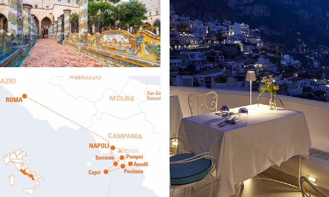 Roma (sem hospedagem) > Sorrento > Pompéia > Capri > Positano > Nápoles (sem hospedagem)