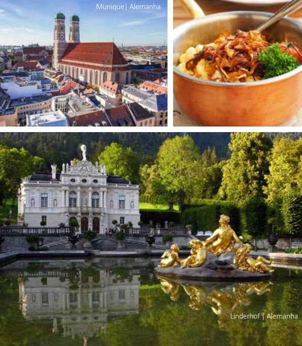 Café da manhã. O dia começa com uma visita ao Castelo de Neuschwanstein, construído por Luís II, o famosos Rei Louco. Ao meio-dia viagem a Oberammergau, aldeia famosa pela sua representação da Paixão de Cristo e pelo seu artesanato. Pela tarde visita do Palácio de Linderhof. Este é um dos três castelos construídos pelo rei Luís II da Baviera e o único onde viveu por mais tempo. Depois breve parada à Abadia Beneditina de Ettal. Continuação da viagem à cidade de Munique. Hospedagem.